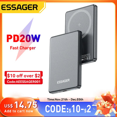 Essager Thin Wireless Power Bank Magnetic 20W 5000mAh Portable Fast Charging External Battery for Magsafe For iPhone 16 15 14 13